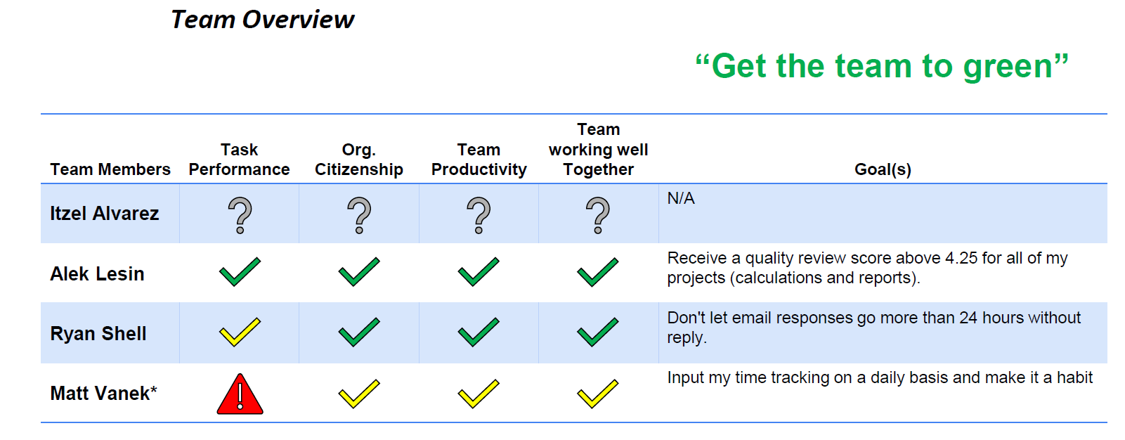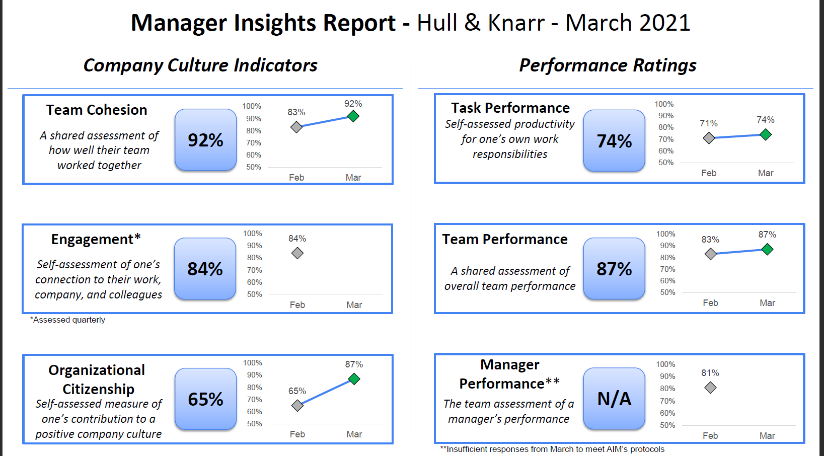 Early iterations of AIM Insights used Microsoft Powerpoint to present a customized report for each manager. Some example snapshots of what that looked like are shown below.